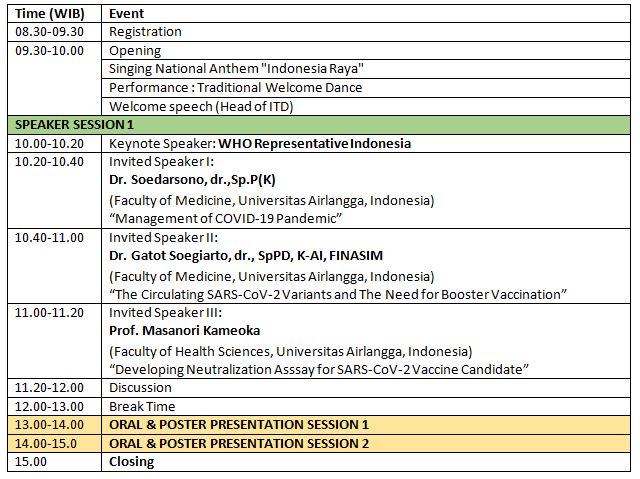 We are delighted to invite you to the “International Conference on Infectious and Tropical Diseases (ICITD) 2021” that will be held virtually on November 29 – 30, 2021. The RC GERID in collaboration with the Institute of Tropical Disease (ITD), Universitas Airlangga proudly presents this conference to answer the current challenges and research outcomes in the relevant fields.